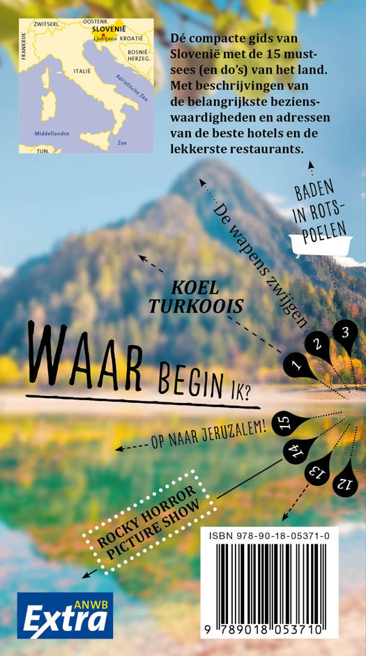 Ontdek Slovenië met de compleet vernieuwde reisgids ANWB Extra Slovenië! Met zijn enorme bossen en zuivere water is dit een van de groenste gebieden van Europa. De afwisseling tussen bergketens en plateaus, labyrintische grotten en glinsterende meren, wijnroutes en een kuststrook maakt Slovenië tot de perfecte bestemming voor een leuke vakantie.