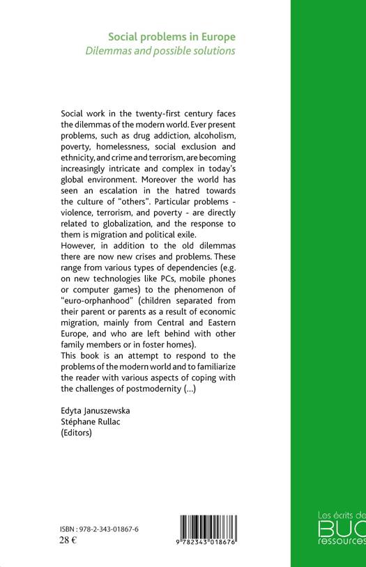 Social work in the twenty-first century faces the dilemmas of the modern world. Ever present problems, such as drug addiction, alcoholism, poverty, homelessness, social exclusion and ethnicity, and crime and terrorism, are becoming increasingly intricate and complex in today's global environment. However, in addition to the old dilemmas there are now new crises and problems. This book is an attempt to respond to the problems of the modern world and to familiarize the reader with various aspects of coping with the challenges of postmodernity ( )