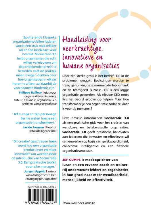 Deze novelle introduceert Sociocratie 3.0 als een praktische gids voor het creëren van wendbare en betekenisvolle organisaties. Sociocratie 3.0 geeft praktische handvaten aan iedereen die bewuster en effectiever wil samenwerken op basis van gelijkwaardigheid, collectieve intelligentie en een flexibele organisatiestructuur.