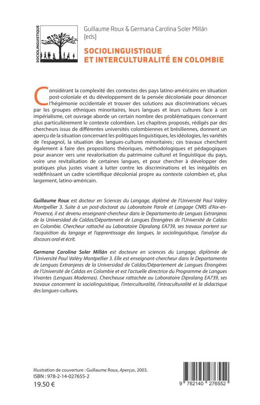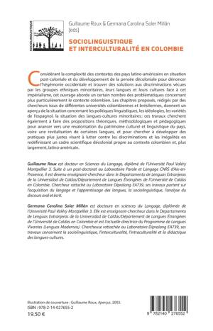Considérant la complexité des contextes des pays latino-américains en situation post-coloniale et du développement de la pensée décoloniale pour dénoncer l'hégémonie occidentale et trouver des solutions aux discriminations vécues par les groupes ethniques minoritaires, leurs langues et leurs cultures face à cet impérialisme, cet ouvrage aborde un certain nombre des problématiques concernant plus particulièrement le contexte colombien. Les chapitres proposés, rédigés par des chercheurs issus de différentes universités colombiennes et brésiliennes, donnent un aperçu de la situation concernant les politiques linguistiques, les idéologies, les variétés de l'espagnol, la situation des langues-cultures minoritaires ; ces travaux cherchent également à faire des propositions théoriques, méthodologiques et pédagogiques pour avancer vers une revalorisation du patrimoine culturel et linguistique du pays, voire une revitalisation de certaines langues, et pour chercher à développer des pratiques plus justes visant à lutter contre les discriminations et les inégalités en redéfinissant un cadre scientifique décolonial propre au contexte colombien et, plus largement, latino-américain.