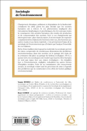 Changement climatique, pollutions et dégradation de la biodiversité sont devenus les plus grandes menaces qui pèsent sur l’humanité, et constituent les défis parmi les plus décisifs que doivent relever les sociétés humaines. Si ces phénomènes impliquent des mécanismes biophysiques et géochimiques, ils sont la conséquence des activités humaines, des modes de production et des modes de consommation des sociétés. Face à ces changements qui interrogent la place de l’homme dans la nature, il est nécessaire de repenser conjointement les relations des hommes entre eux, des hommes aux autres vivants et des hommes aux biens matériels  : c’est justement l’enjeu de la sociologie de l’environnement que de proposer des analyses qui permettent d’éclairer l’ensemble de ces relations.