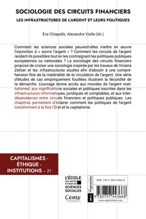 Comment les sciences sociales peuvent-elles mettre en oeuvre l’injonction à « suivre l’argent » ? Comment les circuits de l’argent rendent-ils possibles tout en les contraignant les politiques publiques européennes ou nationales ? La sociologie des circuits financiers propose de croiser une sociologie inspirée par les travaux Viviana Zelizer et les infrastructures studies afin d’aboutir à une compréhension fine de la matérialité de la circulation de l’argent. Une série d’études de cas empiriquement fouillées illustrent la fécondité de la démarche. L’ouvrage donne accès aux mondes de l’argent institutionnel, aux significations sociales et politiques inscrites dans les infrastructures informatiques, juridiques et comptables, et aux interdépendances entre circuits financiers et politiques publiques. Les chapitres permettent d’éclairer comment les politiques de l’argent transforment à la fois l’État et le capitalisme.