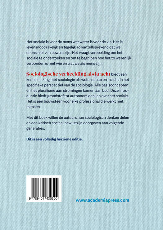 Sociologische verbeelding als kracht biedt een kennismaking met sociologie als wetenschap en inzicht in het specifieke perspectief van de sociologie. Alle basisconcepten en het pluralisme aan stromingen komen aan bod. Deze introductie biedt grondstof tot autonoom denken over het sociale. Het is een bouwsteen voor elke professional die werkt met mensen.