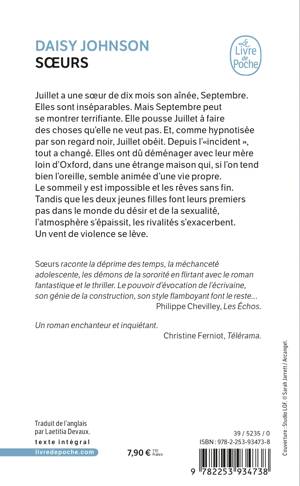 Sœurs raconte la déprime des temps, la méchanceté adolescente, les démons de la sororité en flirtant avec le roman fantastique et le thriller. Le pouvoir d’évocation de l’écrivaine, son génie de la construction, son style flamboyant font le reste... Philippe Chevilley, Les Échos.