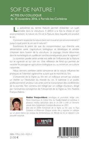 La polysémie du terme Nature permet d'aborder un sujet sensible dans la viticulture. Il définit à la fois la chose et son environnement, la nature du Vin et la Nature dans laquelle est produit le vin. Comment respecter la nature dans son travail et son environnement ? Jusqu'à quel point le vin est-il naturel ? Le paysage s'invite désormais dans le marketing du vin, quelles en sont les conséquences pour le vigneron ?