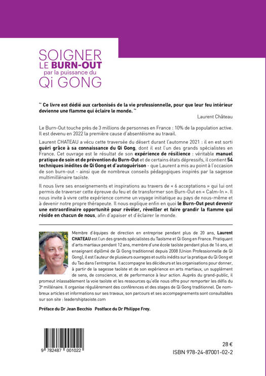 Le burn-out touche près de 3 millions de personnes en France : 10% de la population active. Il est devenu la première cause d'absentéisme au travail. Laurent Chateau a vécu cette traversée du désert en 2021 : il en est sorti guéri grâce à sa connaissance du Qi Gong, dont il est l'un des grands spécialistes en France. Cet ouvrage est le résultat de son expérience de résilience : véritable manuel pratique de soin et de prévention du burn-out et de certains états dépressifs, il contient 54 techniques inédites de Qi Gong et d'autoguérison - que Laurent a mis au point à l'occasion de son burn-out - ainsi que de nombreux conseils pédagogiques inspirés par la sagesse taoïste. Il nous invite à vivre cette expérience comme une expérience initiatique et nous explique en quoi le burn-out peut devenir une extraordinaire opportunité pour révéler, réveiller et faire grandir la flamme qui est en nous, et pour la faire briller autour de nous.