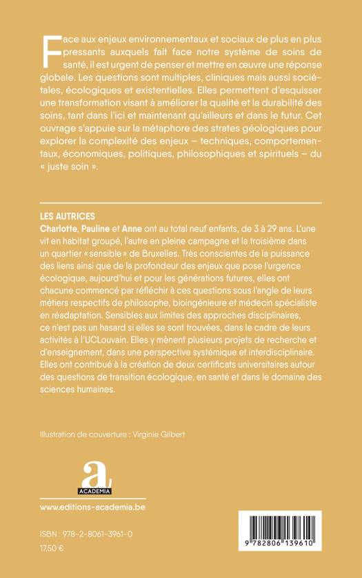 Face aux enjeux environnementaux et sociaux de plus en plus pressants auxquels fait face notre système de soins de santé, il est urgent de penser et mettre en œuvre une réponse globale. Les questions sont multiples, cliniques mais aussi sociétales, écologiques et existentielles. Elles permettent d’esquisser une transformation visant à améliorer la qualité et la durabilité des soins, tant dans l’ici et maintenant qu’ailleurs et dans le futur. Cet ouvrage s’appuie sur la métaphore des strates géologiques pour explorer la complexité des enjeux – techniques, comportementaux, économiques, politiques, philosophiques et spirituels – du « juste soin ».