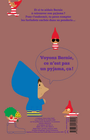 « Petit lecteur, et si tu aidais Bernie à retrouver son pyjama ? Et, pour t'endormir, tu peux compter les farfadets cachés dans sa penderie... » Une nouvelle aventure de Bernie toujours aussi rigolote ! Un album à mélanger, résolument joyeux pour aller se coucher !