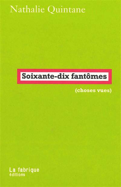 C’est ce maintenant, ce présent des signes sensibles et de l’expérience fasciste ordinaire que s’acharne à repérer et à décrire Soixante-dix fantômes en une soixantaine de courts textes qui prennent appui sur des choses vues ou entendues : un ballon jaune, des lunettes noires… et quelquefois l’irruption d’un personnage bien connu – Bob Marley ou Valérie Pécresse !