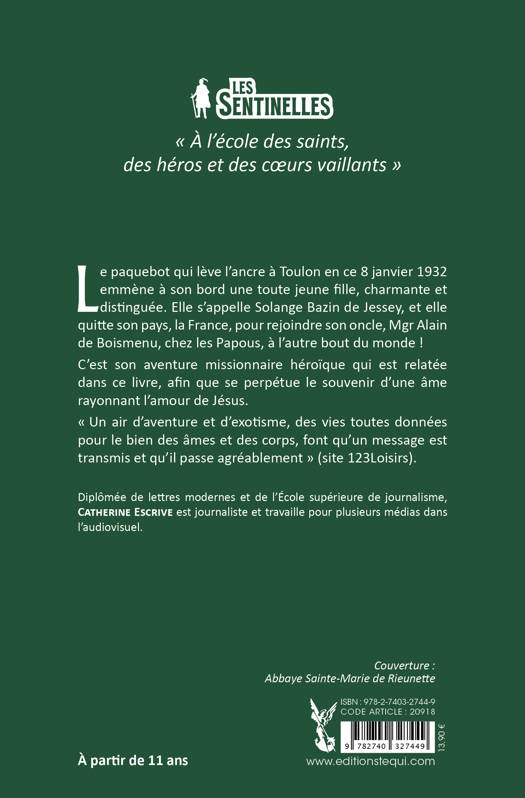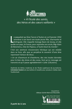 Le paquebot qui lève l'ancre à Toulon en ce 8 janvier 1932 emmène à son bord une toute jeune fille, charmante et distinguée. Elle s'appelle Solange Bazin de Jessey, et elle quitte son pays, la France, pour une terre lointaine et inhospitalière. Elle est partie rejoindre son oncle, Monseigneur Alain de Boismenu, chez les Papous, à l'autre bout du monde ! Mais Solange n'est pas de celles qui regardent en arrière. Et ce ne sont pas les sangsues, les chauves-souris géantes ou les serpents de la jungle rebelle qui l'arrêteront - elle pénètre, dit-elle, « dans un monde enchanté ». Lorsque Solange revêt la robe et le voile gris des missionnaires « Ancelles », communauté fondée par son oncle, et devient supérieure de 23 soeurs papoues, elle sait que Dieu vient de lui redonner un « chez elle » et une famille singulièrement agrandie.