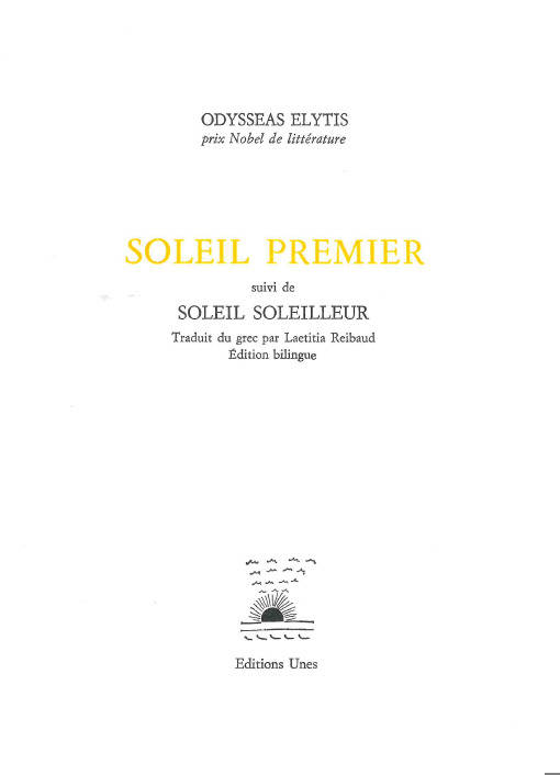 Nous avons souhaité rassembler dans cette édition deux textes d’Odysseas Elytis, réunis par la lumière du soleil. Soleil premier (1943) et Soleil soleilleur (1971) paraissent à presque trente années d’intervalle, dans des époques de la vie du poète et des contextes historiques et politiques très différents. Pour le premier, jeune soldat, il revient blessé et malade du front albanais de la Seconde guerre mondiale. Pour le second, déjà reconnu comme l’un des plus grands poètes grecs, il écrit pour un peuple qui après des années de guerre civile, d’instabilité politique et de corruption étatique, subit la dictature des Colonels. Soleil premier semble vouloir évacuer le souvenir de la guerre par sa nature lumineuse et porteuse d’espoir, déployant un lyrisme intime, érotique et égéen qui célèbre cette terre grecque qui « s’enracine dans la mer » et qui est « le cœur de sa poétique » selon sa traductrice Lætitia Reibaud. Elytis atteint là un équilibre miraculeux, soutenu par la puissance de la mer, des oliviers, des agrumes et des oiseaux, se hissant au point d’incandescence maximal du poème qui apparaît comme le « corps de l’été nu brûlé ». Porté par des « vents de fête » et des « caresses d’héliotropes », le poème est un tournis, un éternel recommencement de la beauté qui plonge les corps dans l’irradiation du soleil. Une transfiguration s’opère alors, la mer devient la terre, les herbes dans le vent se font écume, les algues sont le ciel, le masculin devient féminin, et nous emporte dans l’émoi de l’exaltation amoureuse, ou dans la course d’un enfant qui passe sur le petit pont entre la mer et l’église, entre les figuiers et les galets. Nous buvons ces poèmes comme une eau fraîche un jour de soleil, entourés par « le bruissement de la mer perpétuelle » et « les cigales dans les oreilles des arbres », tournons les pages entre rêve et griserie, avec cette sensation de saisir pleinement la lumière, de la faire jaillir « du sommet du ciel jusqu’au fond du cœur ». Cet éblouissement se prolonge dans Soleil soleilleur, poème versifié destiné à être mis en musique et chanté et qui affirme la bienfaisance et la toute-puissance de l’astre solaire, dans lequel il dialogue tour à tour avec le narrateur au vers bref et léger, les vents qui font le tour des îles de leur souffle solennel et le chant sautillant et espiègle d’une fillette, qui pousse ses chœurs vers une forme d’assomption. C’est toujours vers le soleil que se tourne le poète dans la tourmente, comme éternel « veilleur » et protecteur de cette terre grecque qui est chez Elytis celle de l’éros et de la lumière.