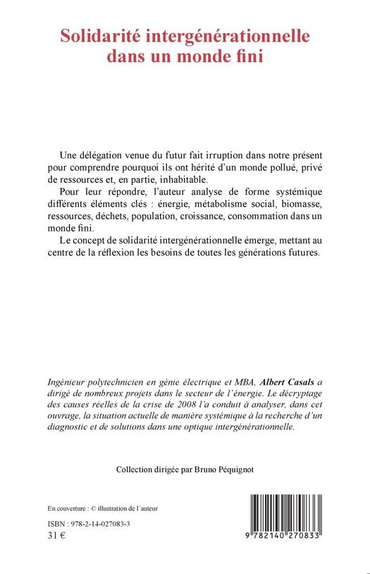 Une délégation venue du futur fait irruption dans notre présent pour comprendre pourquoi ils ont hérité d'un monde pollué, privé de ressources et, en partie, inhabitable. Pour leur répondre, l'auteur analyse de forme systémique différents éléments clés : énergie, métabolisme social, biomasse, ressources, déchets, population, croissance, consommation dans un monde fini. Le concept de solidarité intergénérationnelle émerge, mettant au centre de la réflexion les besoins de toutes les générations futures.