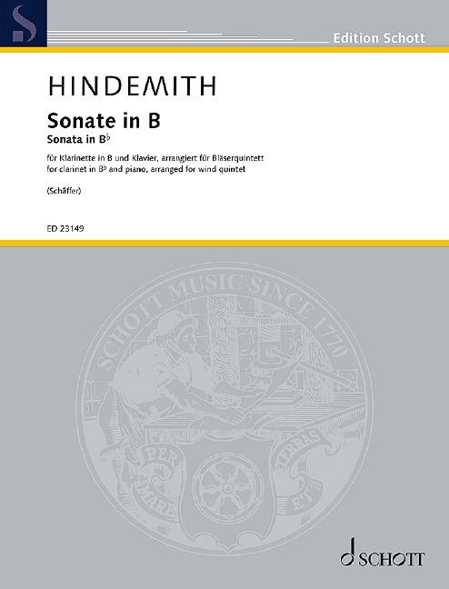 Hindemiths Sonaten gehören in das Repertoire vieler Instrumentalisten. Da Hindemith mit der Kleinen Kammermusik für Bläserquintett nur ein einziges Werk für diese Besetzung schrieb, lag nahe, eine seiner Sonaten dafür zu bearbeiten. Paul Leonard Schäffer behält in seiner Bearbeitung der Sonate für Klarinette in B und Klavier den Solopart bei und verteilt die Klavierbegleitung auf die verbleibenden Instrumente. Schwierigkeitsgrad: 3-4