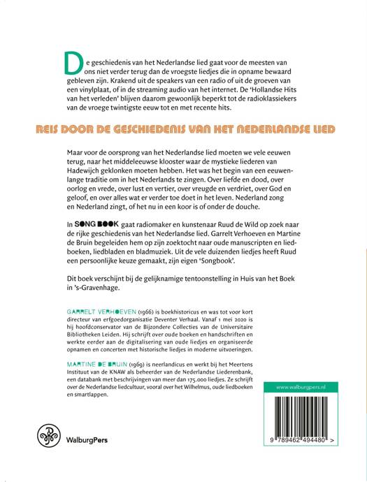 In 'Songbook van Ruud de Wild' gaat radiomaker en kunstenaar Ruud de Wild op zoek naar de rijke geschiedenis van het Nederlandse lied. De sporen van de Nederlandse liedcultuur van de middeleeuwen tot heden zijn te vinden in de collecties handschriften, liedboeken, liedbladen en bladmuziek die onder meer bewaard worden in de Koninklijke Bibliotheek, de Bibliotheek van de Universiteit van Amsterdam, het Theater Instituut Nederland, het Meertens Instituut en in Museum Meermanno.