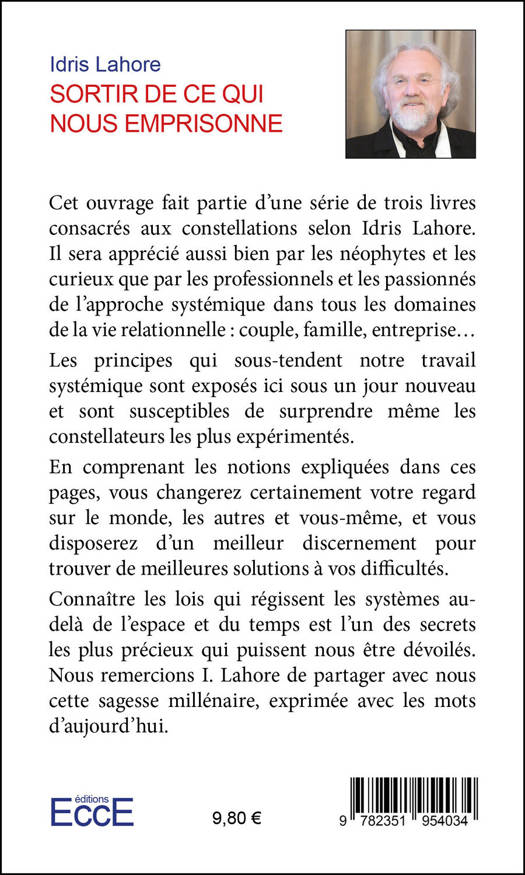 Cet ouvrage fait partie d’une série de trois livres consacrés aux constellations selon Idris Lahore. Il sera apprécié aussi bien par les néophytes et les curieux que par les professionnels et les passionnés de l’approche systémique dans tous les domaines de la vie relationnelle : couple, famille, entreprise… Les principes qui sous-tendent notre travail systémique sont exposés ici sous un jour nouveau et sont susceptibles de surprendre même les constellateurs les plus expérimentés. En comprenant les notions expliquées dans ces pages, vous changerez certainement votre regard sur le monde, les autres et vous-même, et vous disposerez d’un meilleur discernement pour trouver de meilleures solutions à vos difficultés. Connaître les lois qui régissent les systèmes au-delà de l’espace et du temps est l’un des secrets les plus précieux qui puissent nous être dévoilés. Nous remercions Idris Lahore de partager avec nous cette sagesse millénaire, exprimée avec les mots d’aujourd’hui.