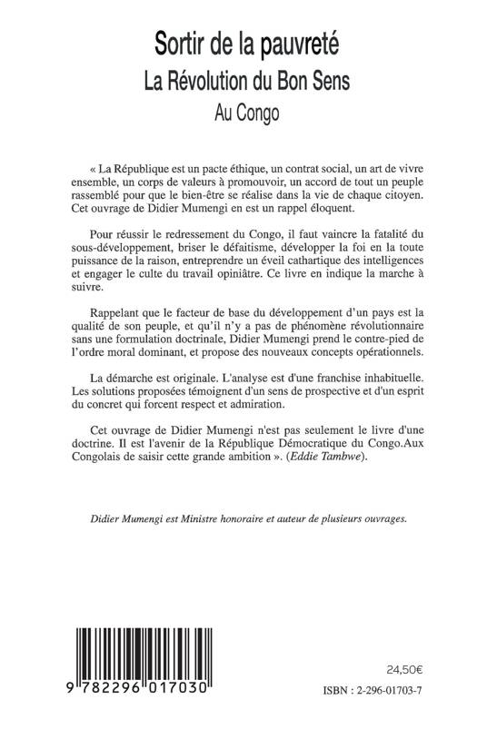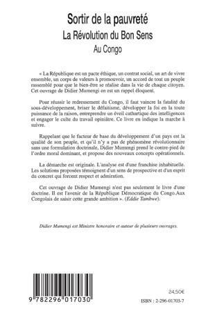 Pour réussir le redressement du Congo, il faut vaincre la fatalité du sous-développement, développer la foi en la toute-puissance de la raison, entreprendre un réveil cathartique des intelligences et engager le culte du travail opiniâtre. Rappelant que le facteur de base du développement d'un pays est la qualité de son peuple et qu'il n'y a pas de phénomène révolutionnaire sans formulation doctrinale, l'auteur prend le contre-pied de l'ordre moral dominant et propose de nouveaux concepts opérationnels.