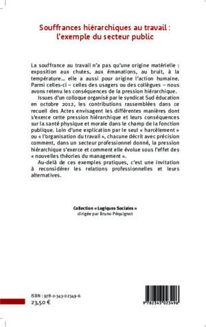 La souffrance au travail n'a pas qu'une origine matérielle, elle a aussi pour origine l'action humaine. Ces contributions envisagent les différentes manières dont s'exerce la pression hiérarchique et leurs conséquences sur la santé physique et morale dans le champ de la fonction publique. Au-delà d'une explication par le seul "harcèlement" ou "l'organisation du travail", voici décrit avec précision comment la pression hiérarchique s'exerce et comment elle évolue sous l'effet des "nouvelles théories du management".