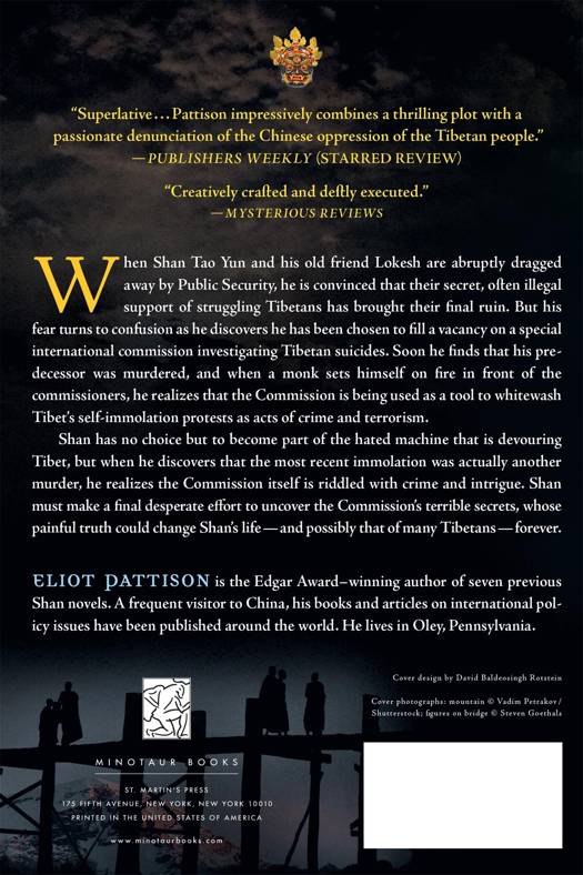 In Eliot Pattison's Soul of the Fire, Shan Tao Yun and his old friend Lokesh are abruptly dragged away by Public Security; he is convinced that their secret, often illegal, support of struggling Tibetans has brought their final ruin. But his fear turns to confusion as he discovers he has been chosen to fill a vacancy on a special international commission investigating Tibetan suicides. Soon he finds that his predecessor was murdered, and when a monk sets himself on fire in front of the commissioners he realizes that the Commission is being used as a tool to whitewash Tibet's self-immolation protests as acts of crime and terrorism. Shan has no choice but to become part of the hated Chinese machine that is devouring Tibet, but when he discovers that the most recent immolation was actually another murder, he realizes the Commission itself is riddled with crime and intrigue. Everywhere he turns, Shan finds new secrets that seem to lead to the last agonizing chapter of his life. He must make a final desperate effort to uncover the Commission's terrible secrets whose painful truth could change Shan's life - and possibly that of many Tibetans - forever.