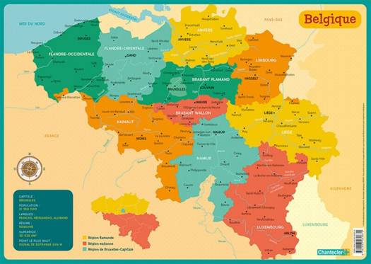 Ce beau sous-main en PVC vernis représentant la carte de la Belgique est parfait en soutien scolaire au cours de géographie. Pour chaque province sont mentionnés son chef-lieu et des villes importantes. Avec les fleuves les plus connus et des données importantes concernant la Belgique. Jolies illustrations et couleurs attrayantes Facilement lavable avec un chiffon humide Convient aussi comme set de table
