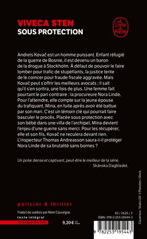 Andreis Kova est un homme puissant. Enfant réfugié de la guerre de Bosnie, il est devenu le baron de la drogue à Stockholm. À défaut de pouvoir le faire tomber pour trafic de stupéfiants, la justice tente de le coincer pour fraude fiscale. Mais Kova peut s’offrir les meilleurs avocats ; il sait qu’il s’en sortira, une fois de plus. Une femme fait pourtant le pari contraire : la procureure Nora Linde. Pour l’atteindre, elle compte sur la jeune épouse du trafiquant, Mina, en fuite après avoir été battue par son mari. C’est un témoin clé qui pourrait faire basculer le procès.