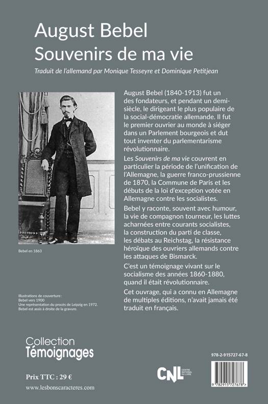 August Bebel (1840-1913), fondateur de la social-démocratie allemande fut certainement l'homme de son temps le plus populaire du monde germanique, plus encore que Bismarck ou que l'empereur Guillaume I. Né dans une famille pauvre, le jeune Bebel est précipité dans le militantisme ouvrier. À la tête d'une fragile union d'associations ouvrières, député à 27 ans, son vote contre les crédits de guerre en 1871 et son soutien à la Commune de Paris déclenche la haine implacable des possédants contre le socialisme naissant. Les brimades, les poursuites, la prison, les lois anti-socialistes, rien n'entravera Bebel et l'ascension du parti social-démocrate, devenu en 1890 le plus grand parti ouvrier d'Europe.