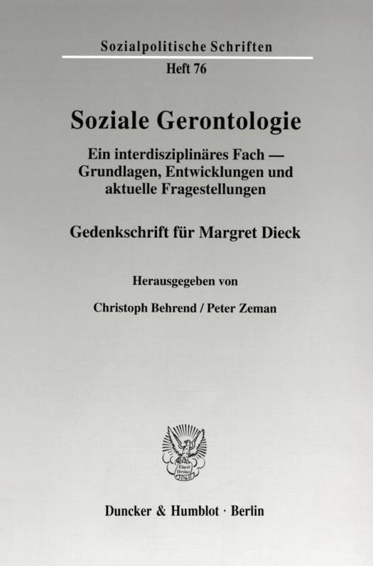 Der vorliegende Band enthält Beiträge einer Gedenkveranstaltung für die 1996 verstorbene langjährige Leiterin des Deutschen Zentrums für Altersfragen (DZA), Margret Dieck. Ihr wissenschaftliches Wirken hat der Entwicklung der Sozialen Gerontologie in der Bundesrepublik über mehr als fünfundzwanzig Jahre viele Impulse gegeben. Das zeigen ihre in der Fachwelt mit großer Aufmerksamkeit rezipierten Veröffentlichungen und die Aktivitäten des DZA, für dessen Leistungsprofil sie wichtige Weichenstellungen geleistet hat. Soziale Gerontologie ist ein Wissenschaftsbereich, der auf wachsendes Interesse stößt. Hintergrund ist die gesellschaftliche und demographische Entwicklung, durch die nicht nur hierzulande das Alter eine neue Bedeutung erhält. Alternsprozesse und Lebenslagen im höheren Alter sind nicht einfach biologisch determiniert, sondern fundamental auch von den sozialen, ökologischen und zeitgeschichtlich-historischen Umständen geprägt. Soziale Gerontologie versucht die Vielfalt dieser Einflüsse und ihre Wechselwirkungen multidisziplinär zu erforschen.
