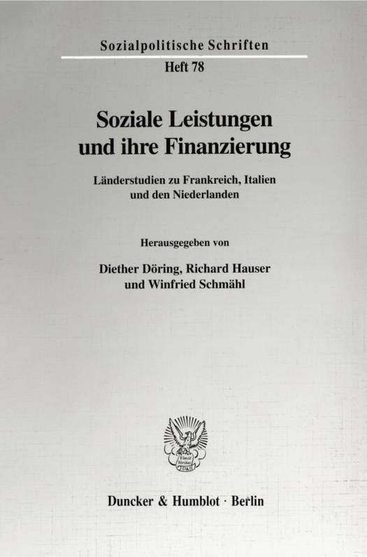 Ausgewählt wurden das niederländische (bearbeitet von K. Pöhler), das italienische (bearbeitet von U. Klammer) und das französische System (bearbeitet von D. Wischeropp). Das niederländische System ist universell angelegt, stellt vorrangig auf die Basissicherung der Einwohner ab und setzt in hohem Maße steuerähnliche Beiträge in der Finanzierung ein. Das italienische Sozialleistungssystem ist kategorial orientiert und weist in der Leistungsgestaltung wie in der Finanzierung einen stark gemischten Charakter auf. Ebenfalls kategorial ausgerichtet ist das französische System, das vorrangig lebensstandardsichernde Leistungen vorsieht und zur Finanzierung einen sehr hohen Anteil von bruttolohnbezogenen Beiträgen einsetzt.