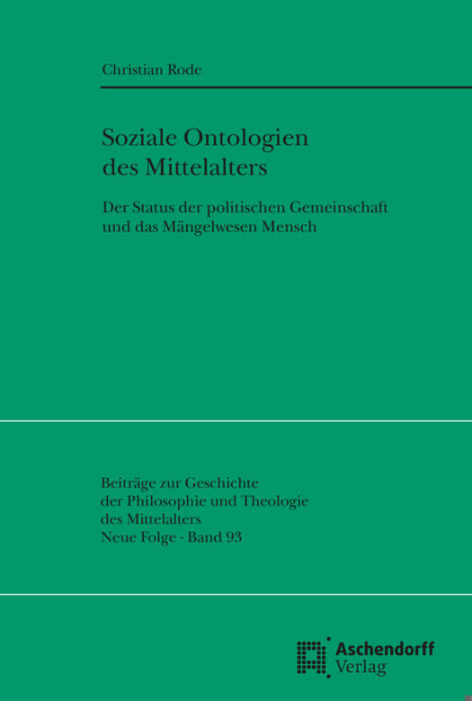 Die Welt der Naturwissenschaften kennt nur materielle Gegenstande, Baume, Hauser, Organismen, die alle aus Materieteilchen zusammengesetzt sind. Aber erschopft sich das Inventar unserer Welt in physischen Einzeldingen und deren Eigenschaften? Gibt es nicht auch Geld, Kunstwerke, Gesetze und die Eigenschaften, Bundesprasident oder Brieftrager zu sein? Sind diese Gegenstande und Eigenschaften Dinge oder Entitaten sui generis oder lassen sie sich auf naturwissenschaftlich beschreibbare Objekte, auf Atome, Quarks, Elektronen o.a. zuruckfuhren? Die analytische Philosophie hat in den letzten zwei bis drei Jahrzehnten das Thema der Ontologie des Sozialen wieder in den Fokus der vorrangig angelsachsischen Diskussion gestellt. Jedoch zeigt ein Blick auf das Mittelalter, dass bereits im 13. und 14. Jahrhundert eine Menge an Texten verfasst wurde, die sich auf verschiedene Weisen mit diesem Thema beschaftigten. Auf welche Weise haben mittelalterliche Autoren das Sein von sozialen Gegenstanden, von Gesellschaften und von Institutionen konzipiert? Diese Hauptfrage soll anhand ausgewahlter mittelalterlicher Texte (ca. 1260 bis ca. 1350) beantwortet werden. Dabei geht es auch um die Fragen nach der Naturlichkeit der menschlichen Gesellschaft und nach dem Verhaltnis des Individuums und dessen Natur zum Ganzen der politischen Gemeinschaft.