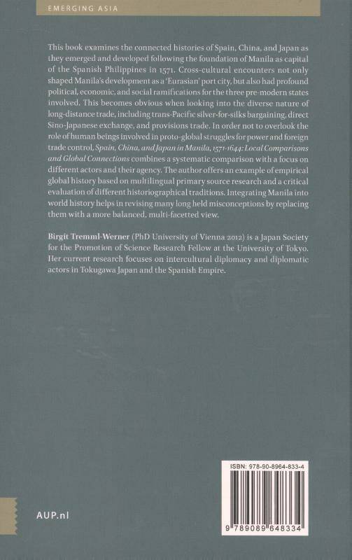 Spain, China and Japan in Manila, 1571--1644 offers a new perspective on the connected histories of Spain, China, and Japan as they emerged and developed following Manila's foundation as the capital of the Spanish Philippines in 1571. Examining a wealth of multilingual primary sources, Birgit Tremml-Werner shows that crosscultural encounters not only shaped Manila's development as a "Eurasian" port city, but also had profound political, economic, and social ramifications for the three premodern states. Combining a systematic comparison with a focus on specific actors during this period, this book addresses many long-held misconceptions and offers a more balanced and multifaceted view of these nations' histories.