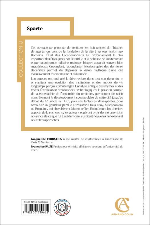Les auteurs ont souhaité la faire revivre dans tout son dynamisme et restituer une évolution des institutions et des modes de vie longtemps perçus comme figés. L’analyse critique des mythes et des textes, l’exploitation des données archéologiques, la prise en compte de la géographie de l’ensemble du territoire, permettent de saisir concrètement le développement spectaculaire de cette cité jusqu’au début du IVe siècle av. J.-C., puis ses tentatives désespérées pour retrouver sa grandeur perdue et résister à tous ceux, Macédoniens ou Romains, qui cherchèrent à la contrôler. En intégrant les derniers aspects de la recherche, les auteurs espèrent avoir donné une vision novatrice de ce que fut Lacédémone, suscitant nouvelles réflexions et nouvelles approches.
