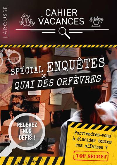 Voici un cahier idéal pour tester son sens logique et faire travailler ses méninges en s’amusant tout l’été, seul ou à plusieurs. Au programme : vol de manuscrit, recel de voitures, contrefaçon de bijoux, braquage de banque... Passez au peigne fin plus de 250 indices et pièces à conviction : lettres, photographies, témoignages, coupures de presse, rapports médicaux, actes notariés... À vous de démêler ces 12 affaires dignes du Quai des Orfèvres. Êtes-vous prêt à relever ces défis ? À vos crayons !