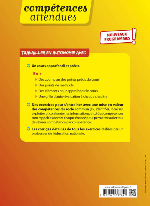 Des exercices classés par compétences attendues du programme avec une mise en valeur des grandes compétences du socle commun (ex. chercher, analyser, représenter, etc.). Ces compétences sont rappelées devant chaque énoncé pour permettre au lecteur de réviser compétence par compétence.