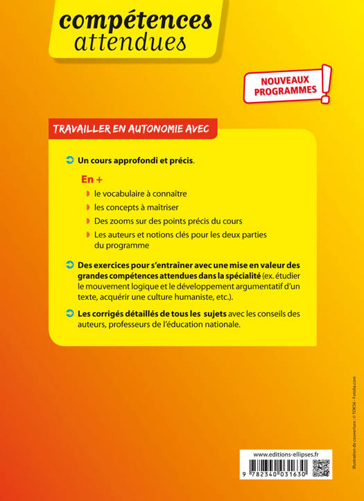 Conforme à la réforme du Bac 2021. Travailler en autonomie avec un cours approfondi (en + le vocabulaire à connaître ; les concepts logique à maîtriser) ; des exercices classés par compétences attendues avec une mise en valeur des grandes compétences du socle commun (ex. chercher, analyser, représenter, etc.) et les corrigés détaillés de tous les sujets avec les conseils des auteurs, professeurs de lycée.