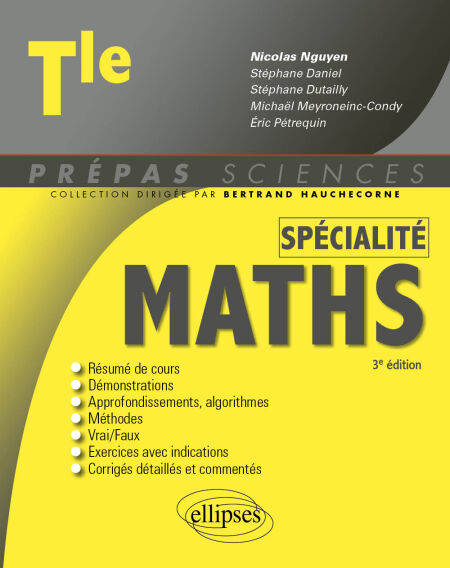 Le résumé de cours. Il vous permettra d'accéder à une connaissance synthétique des notions. Les démonstrations. Elles vous initieront au raisonnement mathématique et développeront votre esprit logique. Les approfondissements et les algorithmes. Ils vous conduiront à une excellente connaissance du programme et à une meilleure maîtrise des sciences du numérique. Les méthodes. Elles vous inculqueront les techniques usuelles qu'il faut savoir mettre en place. Le vrai/faux. Il testera votre compréhension du cours et vous évitera de tomber dans les erreurs classiques. Les exercices, avec indications. Ils vous entraîneront tout au long de l'année pour aborder les devoirs en classe avec profit. Les corrigés détaillés et commentés. Toujours rédigés avec soin, ils vous aideront à progresser dans la résolution des exercices.Ainsi ce livre complètera celui utilisé en cours. Il permettra d'aborder avec aisance les interrogations, les devoirs surveillés et offrira les meilleures conditions pour réussir son baccalauréat et son entrée dans les études supérieures.