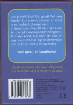 40 kaarten om goed te leren kloklezen! Leer jij kloklezen? Wat goed! Met deze kaarten kun je extra oefenen en word je een echte klokkampioen! In deze doos zitten 40 kleurrijke kaarten die oplopen in moeilijkheidsgraad. Pak een kaart, kijk naar de klok en zeg hoe laat het is. Op de achterzijde van de kaart vind je de oplossing.
