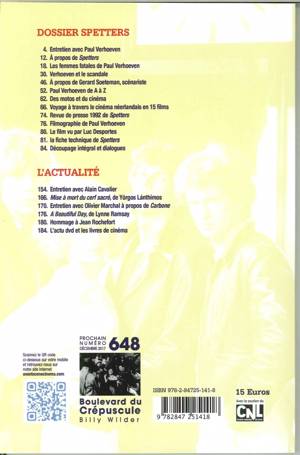 Drame sulfureux sur une jeunesse néerlandaise perdue, en quête de gloire et de sens, Spetters fut à la fois un grand succès public et un scandale médiatique. Un mélange de triomphe et d 'opprobre qui va pousser le metteur en scène Paul Verhoeven dans les bras d'Hollywood, avec le succès que l'on sait. A l'heure où le cinéaste est redevenu, grâce à Elle, un auteur européen à succès, Spetters est le film parfait pour se replonger dans la carrière hollandaise du maître, une époque riche, moins commentée, mais essentielle pour comprendre la période américaine. Un important dossier sur le réalisateur, son oeuvre et le contexte de Spetters accompagnera le découpage complet du film.
