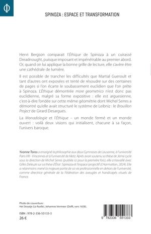 Henri Bergson comparait l'Éthique de Spinoza à un cuirassé Dreadnought, puisque imposant et impénétrable au premier abord. Or, quand on lui applique la bonne grille de lecture, elle s'avère être une cathédrale de lumière. Il est possible de trancher les difficultés que Martial Gueroult et tant d'autres ont exposées et tenté de résoudre sur des centaines de pages si l'on écarte le soubassement euclidien que l'on prête à Spinoza. L'Éthique démontrée more geometrico n'est donc pas euclidienne, malgré sa forme expositive: elle est arguesienne, c'est-à-dire fondée sur cette même géométrie dont Michel Serres a démontré qu'elle avait structuré le système de Leibniz: le Brouillon Project de Girard Desargues. La Monadologie et l'Éthique - un monde fermé et un monde ouvert: voilà deux visions qui initialisent, chacune à sa façon, l'univers baroque.