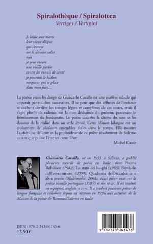 La poésie entre les doigts de Giancarlo Cavallo est une matière subtile qui apparaît par touches successives. Il se peut que des effluves de l'enfance se cachent derrière les tissages légers et complexes de ces textes, mais il s'agit plutôt de radeaux sur la mer déchaînée du présent, percevant le frémissement du lendemain. Le poète maîtrise la dérive du sens et les dessous de la réalité dans le style épuré. Cette édition bilingue est un croisement de plusieurs ensembles étalés dans le temps.