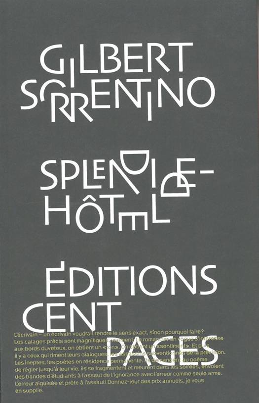 La construction de ce livre est évidente; il s’agit d’un alphabet, ou plutôt d’un abécédaire: 27 lettres ornementales, dont cet étrange R barré entre E et F, sept lignes d’un poème de Thomas Nashe; or cette lettre étrange, symbole de prescription médicale, nous dit que «la beauté n’est que fleur». Sorrentino tente de redonner grâce à la beauté, une beauté tombée en disgrâce à force de vouloir lui donner un sens, et on retrouve dans ce livre toute son ironie déversée sur l’art prétentieux, l’art message, l’art social, les «artistes». Sur cet alphabet qui peut paraître complètement aléatoire, l’auteur, en grand amateur de jazz, joue des riffs; certains, comme si souvent en jazz, sont déjà présents dans les livres précédents de Sorrentino et se retrouveront dans ses livres postérieurs, sa nostalgie sans sentimentalisme de l’Amérique de sa jeunesse, Sheila Henry, les listes, l’artifice qu’est la création littéraire, son refus de présenter des personnages à trois dimensions bien campés, etc., et justement, les musiciens de jazz, de Clifford Brown à Lester Young.