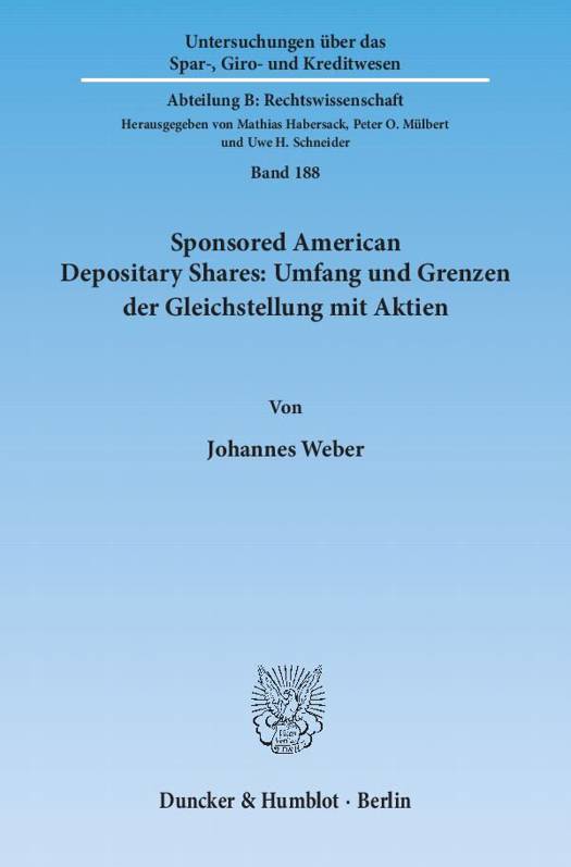 Hier setzt die Arbeit an. Als Ausschnitt aus dem umfangreichen Problembereich, der sich mit diesen US-Papieren verbindet, geht Johannes Weber der Frage nach, inwieweit sponsored ADSs und deren Inhaber im deutschen Aktienrecht den Aktien und Aktionären gleichstehen.
