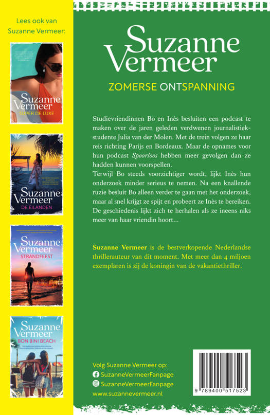 Studievriendinnen Bo en Inès besluiten een podcast te maken over de jaren geleden verdwenen journalistiekstudent Julia van der Molen. Met de trein volgen ze haar reis richting Parijs en Bordeaux. Maar de opnames voor hun podcast Spoorloos hebben meer gevolgen dan ze hadden kunnen voorspellen.