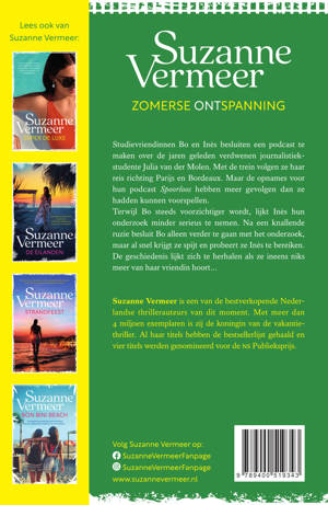 Studievriendinnen Bo en Inès besluiten een podcast te maken over de jaren geleden verdwenen journalistiekstudent Julia van der Molen. Met de trein volgen ze haar reis richting Parijs en Bordeaux. Maar de opnames voor hun podcast Spoorloos hebben meer gevolgen dan ze hadden kunnen voorspellen.