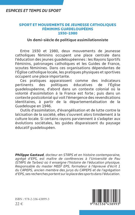 Entre 1930 et 1980, deux mouvements de jeunesse catholiques féminins occupent une place centrale dans l'éducation des jeunes guadeloupéennes les Rayons Sportifs Féminins, patronages catholiques et les Guides de France, scoutes féminines. Dans ces organisations dépendantes de l'Église catholique locale, les pratiques physiques et sportives occupent une place importante. Ces pratiques apparaissent comme des indicateurs pertinents des politiques éducatives de l'Église guadeloupéenne, d'abord dans un contexte colonial où la volonté d'assimilation à la France est forte; puis dans un contexte postcolonial qui voit l'émergence des revendications identitaires, à partir de la départementalisation de la Guadeloupe en 1946. Outils d'assimilation, d'évangélisation et de lutte contre la laïcisation de la société, elles s'ouvrent alors timidement à la culture locale. Si certains rayons parviennent à s'adapter aux évolutions sociétales, les guides disparaissent du paysage éducatif guadeloupéen.