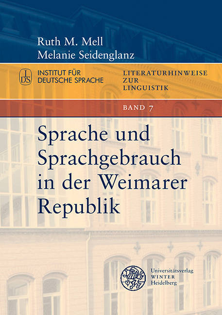 Die Weimarer Republik (1918-1933) ist einer der relevantesten historischen Zeitraume der jungeren deutschen Geschichte, ist sie doch erste deutsche Demokratie und Vorlauferperiode des Nationalsozialismus. Damit ist sie sowohl positives als auch negatives Referenzobjekt fur die Gesellschaft, das politische System und den offentlichen Sprachgebrauch der heutigen Bundesrepublik. Diese Bibliografie bietet einen Uberblick uber das Forschungsfeld der Sprache, der Sprecher und deren Themen in der Weimarer Zeit. Sie informiert systematisch uber methodische Ansatze, Forschungsbeitrage, Nachschlagewerke und Quellen.