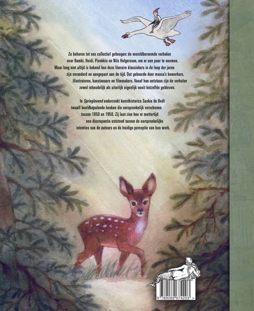 In 'Springlevend' onderzoekt kunsthistorica Saskia de Bodt veertien beeldbepalende boeken die oorspronkelijk verschenen tussen 1850 en 1950. Zij laat zien hoe er mettertijd een discrepantie ontstond tussen de oorspronkelijke intenties van de auteurs en de huidige perceptie van hun werk.