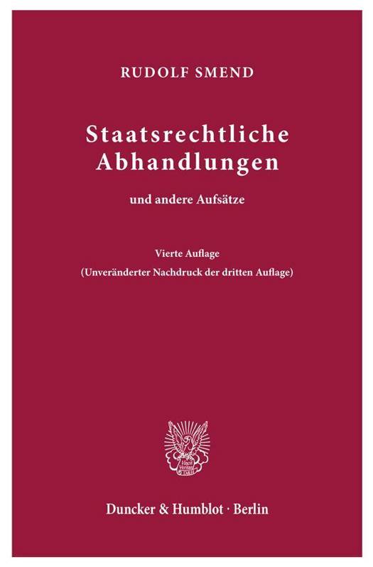 In Smends Wirken bilden Staat und Kirche die beiden großen Gegenstände. Die Verfassungslehre und -praxis unter dem Grundgesetz knüpft in vielem unmittelbar an ihn an: Erinnert sei an Smends Entdeckung des »ungeschriebenen Verfassungsrechts« im Bundesstaat (1916), an das Prinzip des »bundesfreundlichen Verhaltens«, an sein Grundrechtsverständnis (»Bürger und Bourgeois im Deutschen Staatsrecht«, 1933), seine Auslegung der »allgemeinen Gesetze« und an die epochemachenden Arbeiten zum »Problem des Öffentlichen« (1955) sowie zum Staatskirchenrecht. Der in wenigen Monaten entstandene große Wurf »Verfassung und Verfassungsrecht« (1928) ist bis heute ein Klassiker; Gleiches gilt für seinen berühmten Festvortrag zur Feier des zehnjährigen Bestehens des BVerfG am 26.1.1962.