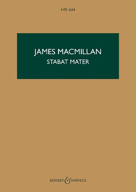 (Boosey & Hawkes Scores/Books). Composed in 2015, Stabat Mater was commissioned by the Genesis Foundation for Harry Christophers and The Sixteen. Scored for mixed chorus and string orchestra, it is a long-awaited sequel to the early masterpiece Seven Last Words from the Cross (1993), for the same forces; indeed, the later work begins with the pianissimo 'dying breaths' with which the earlier score so unforgettably closes. Cast in four movements, Stabat Mater has a duration of 53 minutes. Following the premiere London's Financial Times commented that the composer "speaks of a 'painful world of loss, violence, and spiritual desolation'. Both sides of MacMillan are to be found here, the devotional and the painter of bold, dramatic canvases - the former in the ethereal writing for solo and ensemble voices, the latter in the lacerating blows and feverish anxieties depicted in the string ensemble."