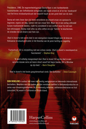 Stad in brand is het eerste deel in een weergaloze nieuwe trilogie over de Ierse en Italiaanse misdaadsyndicaten in het Amerika van de jaren tachtig en negentig.