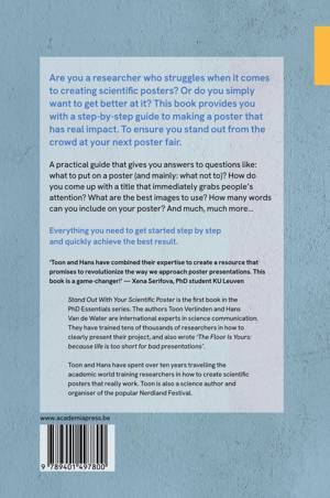 This book provides you with a step-by-step guide to making a scientific poster that has real impact. Are you a researcher who struggles when it comes to creating scientific posters? Or do you simply want to get better at it? This book provides you with a step-by-step guide to making a poster that has real impact to ensure you stand out from the crowd at your next poster fair. A practical guide that gives you answers to questions like: what to put on a poster (and mainly: what not to)? How do you come up with a title that immediately grabs people's attention? What are the best images to use? How many words can you include on your poster? And much, much more... Everything you need to get started step-by-step and quickly achieve the best result.