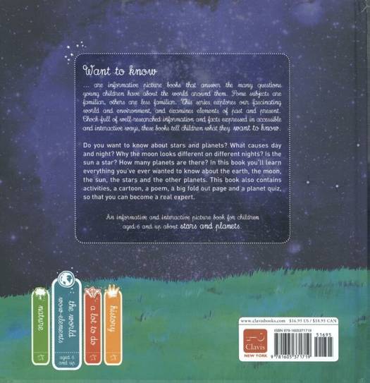 Do you want to know about stars and planets? What causes day and night? Why the moon look different on different nights? Is the sun a star? How many planets are there? In this book you'll learn everything you've ever wanted to know about the earth, the moon, the sun, the stars and the other planets. This book also contains activities, a cartoon, a poem, a big fold-out page and a planet quiz, so that you can become a real expert.